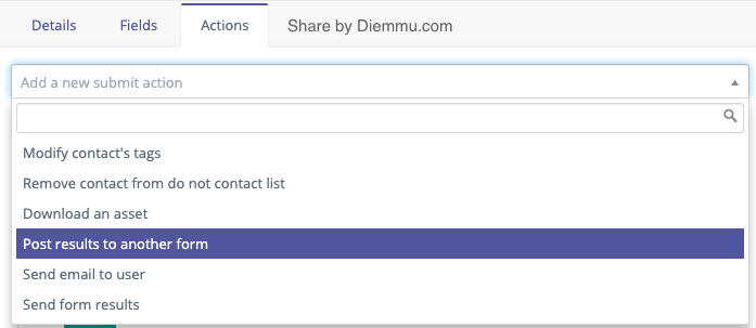 Khi tạo một New Form nó sẽ cho biết bạn có thể thêm các trường (fields) mà bạn muốn thu thập từ khách hàng như là: mail, số điện thoại, tên, … Sau khi thêm các trường rồi bạn sẽ tạo các hành động (action) sau khi người dùng đăng ký vào form đó.